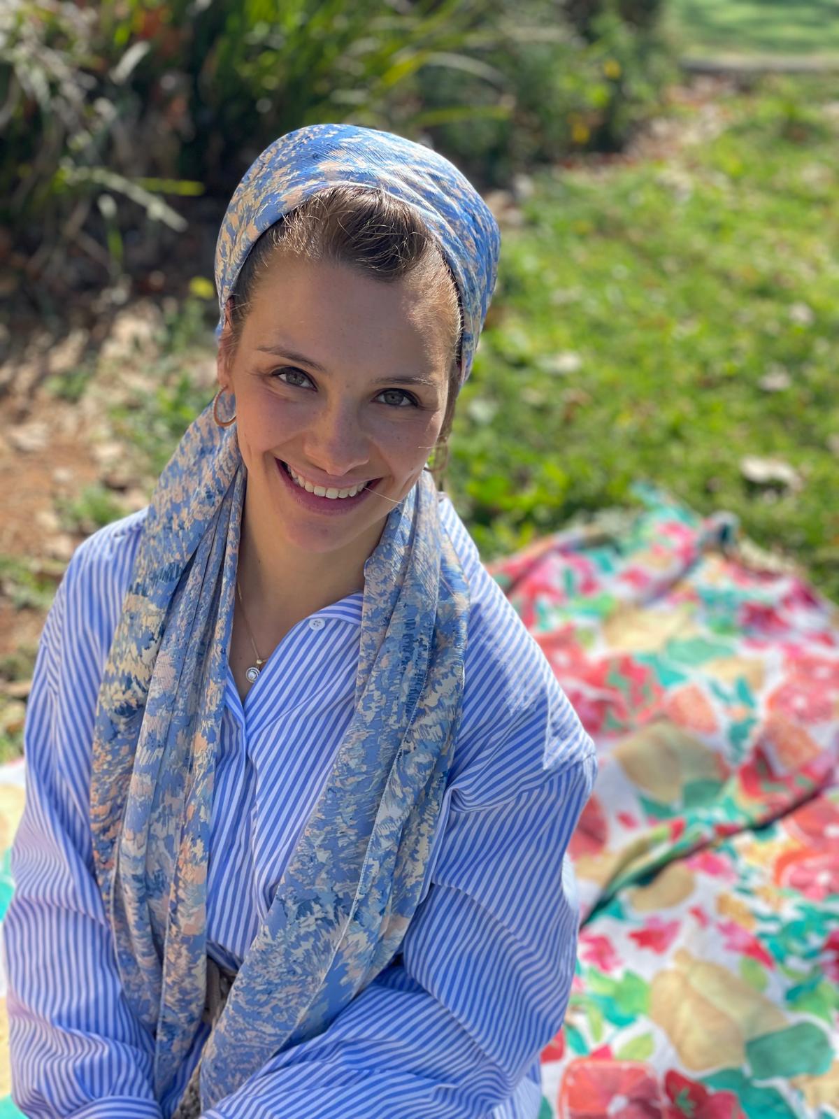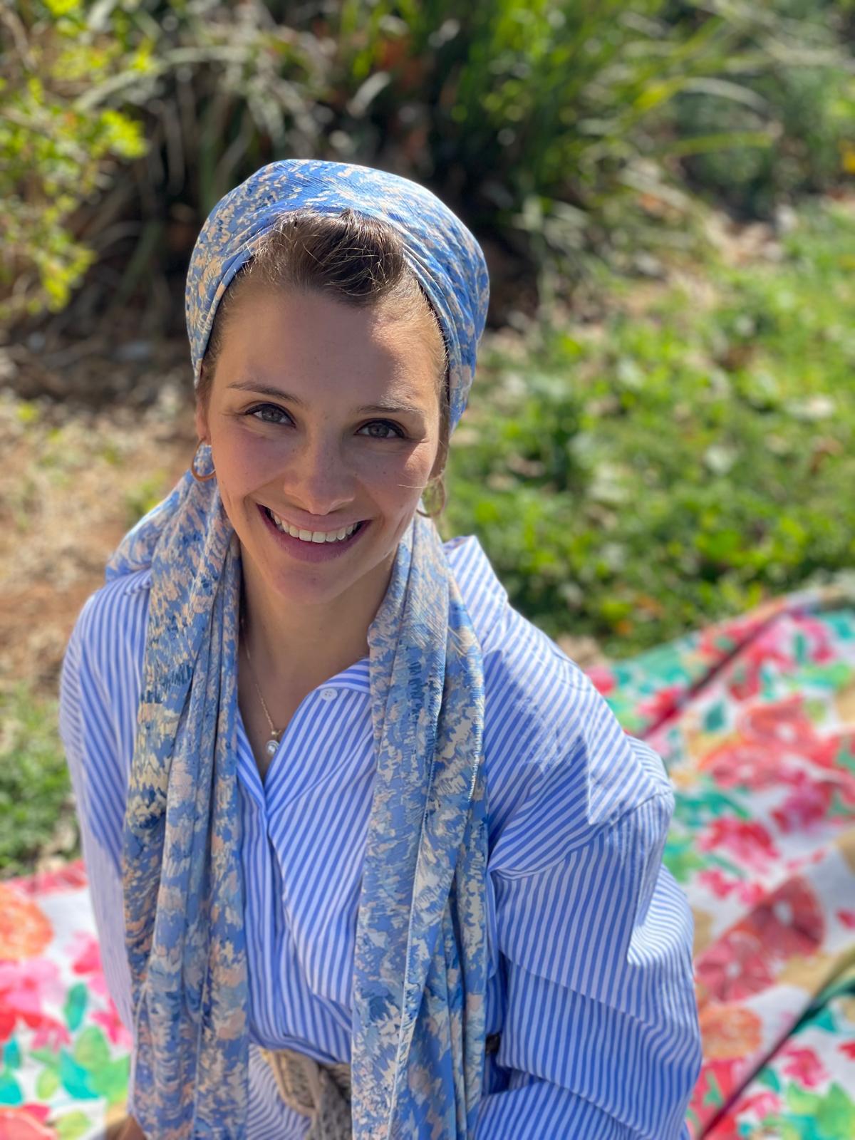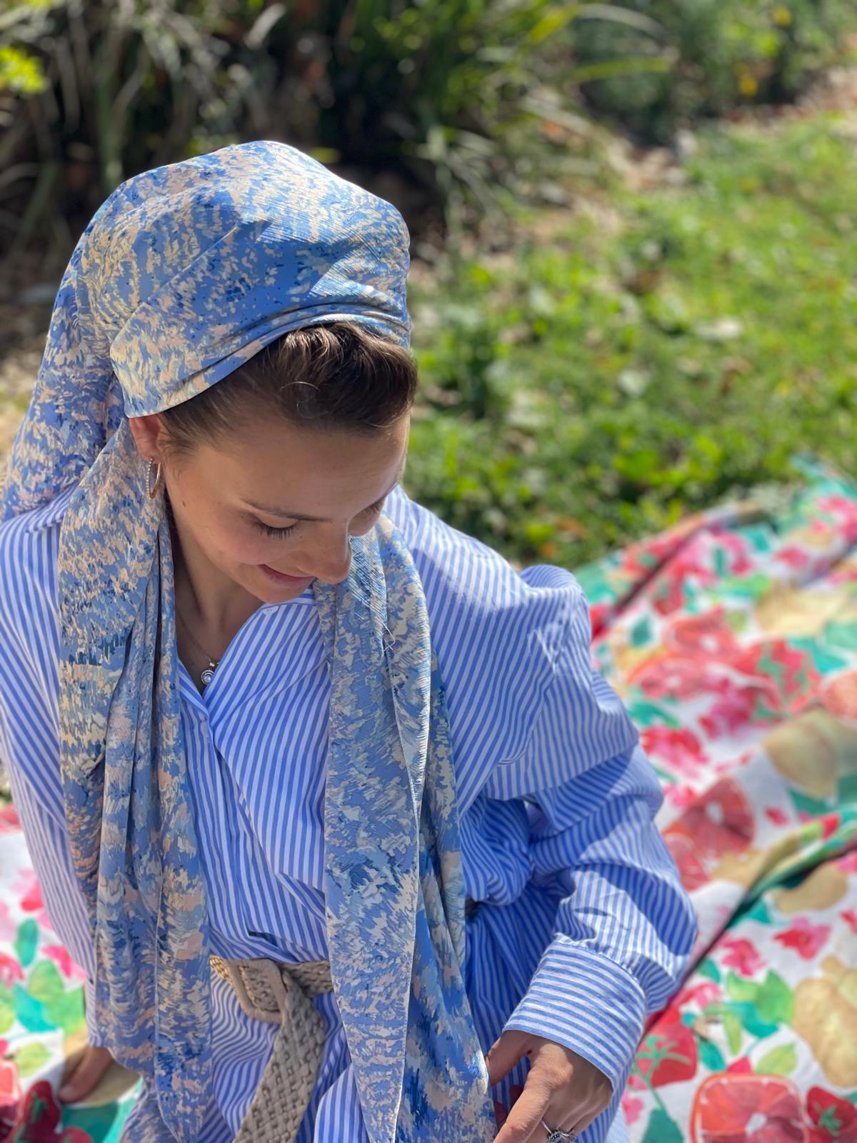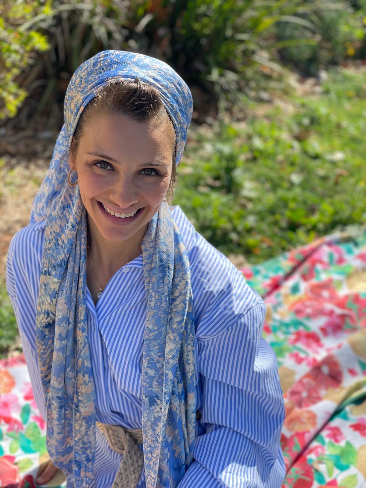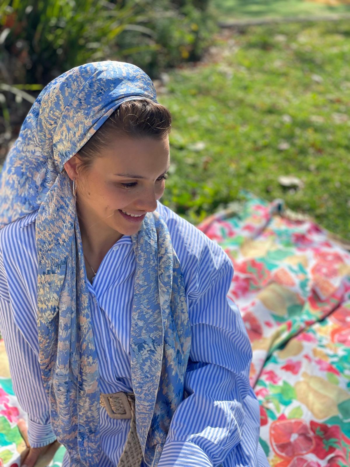 מטפחת סטן עם הדפס מנומר משגע בגווני כרם ותכלת.