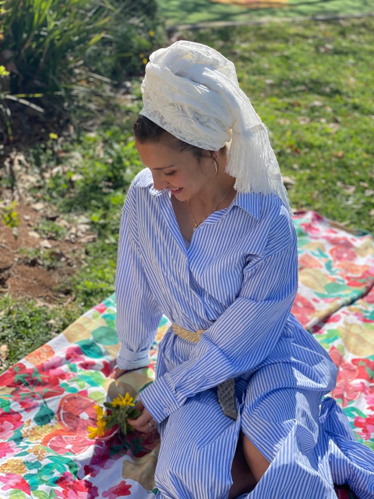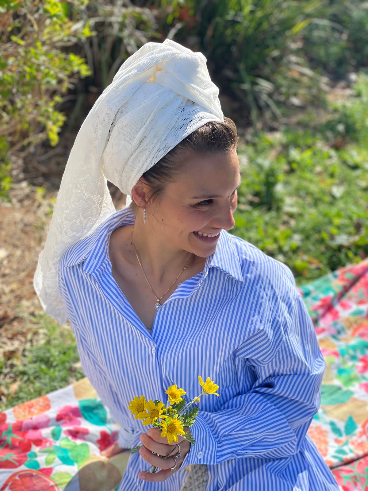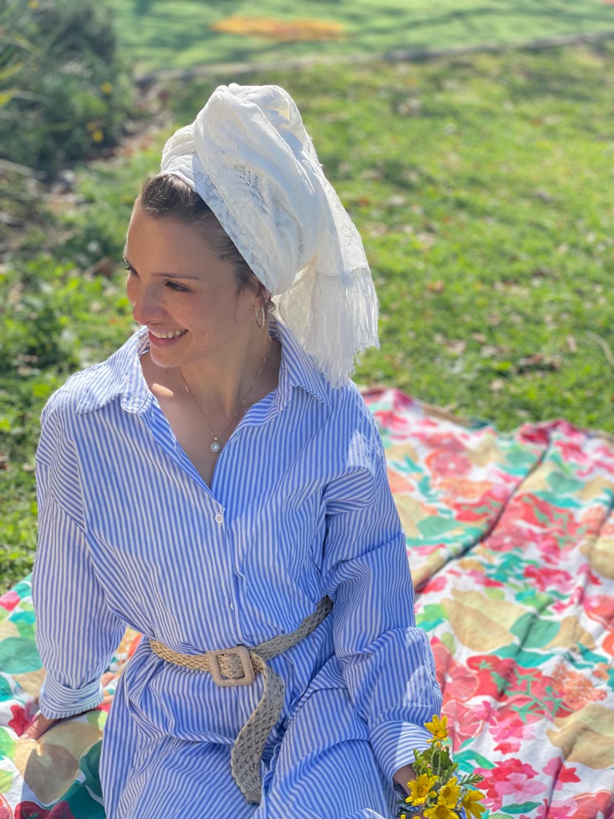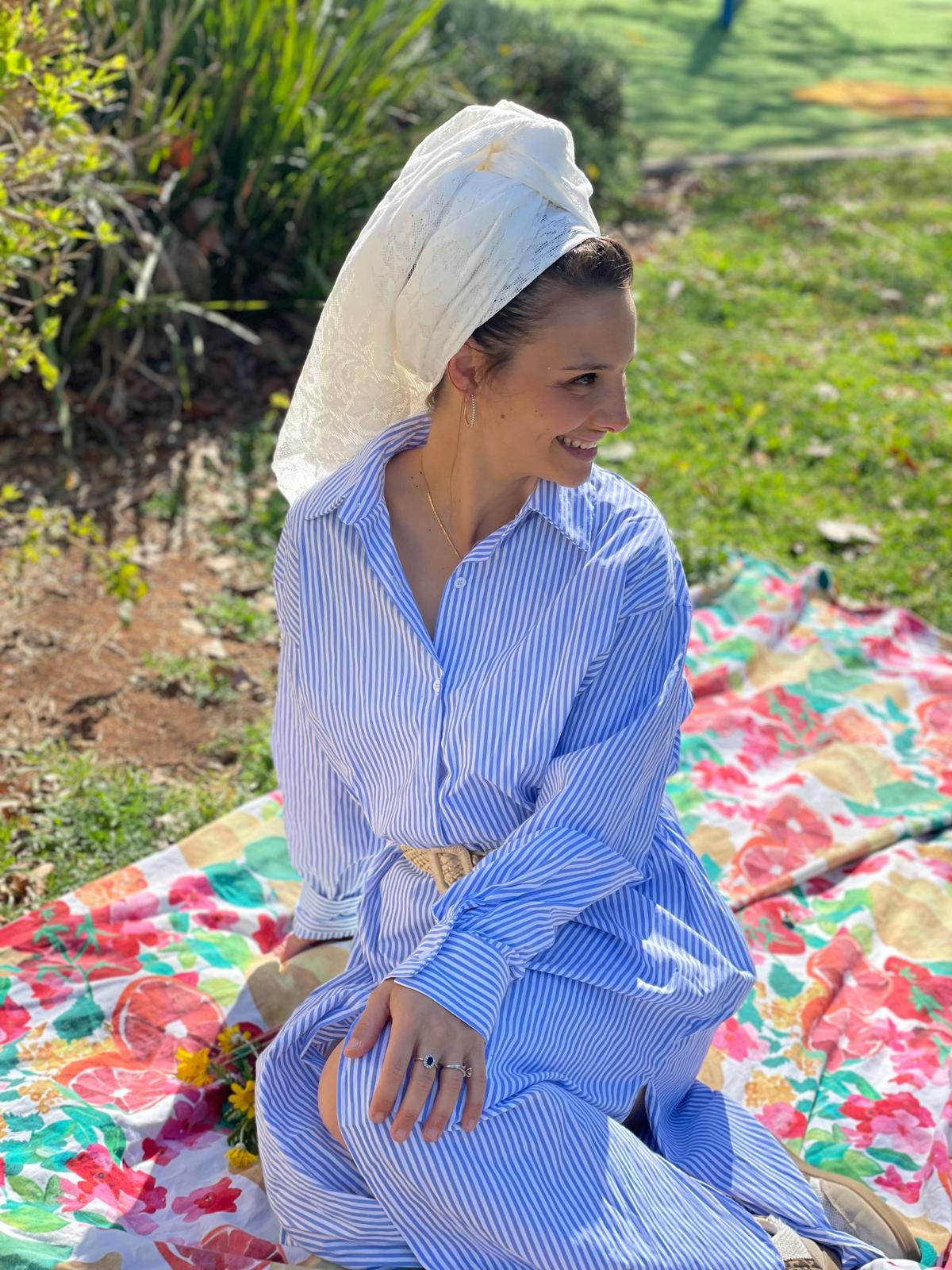 בד תחרה עדין בצבע לבן עם פרנזים תואמים.