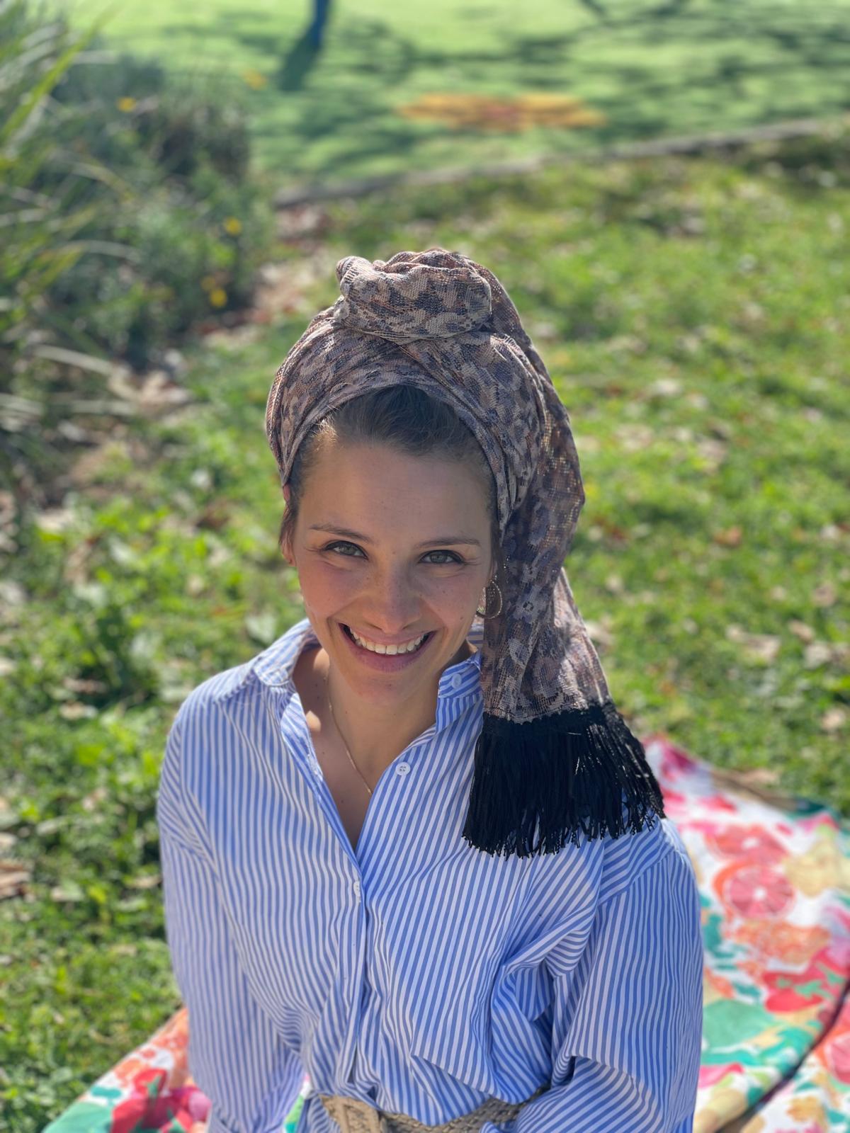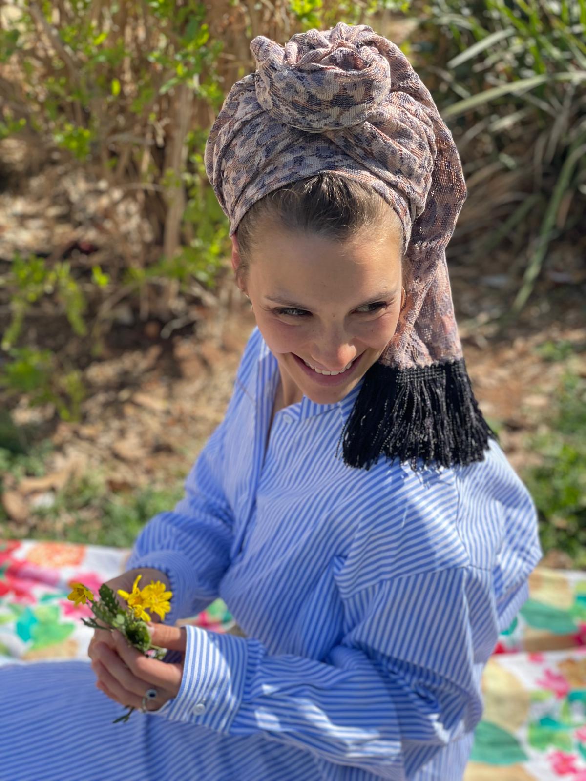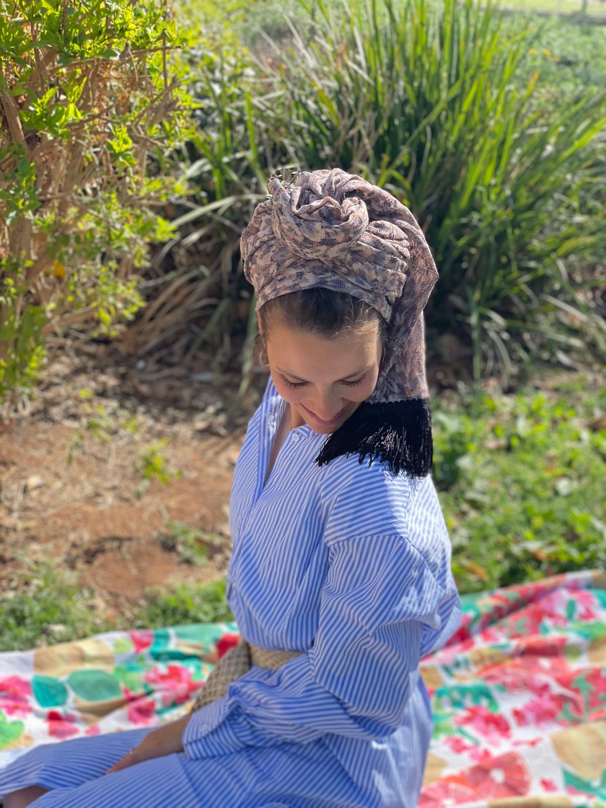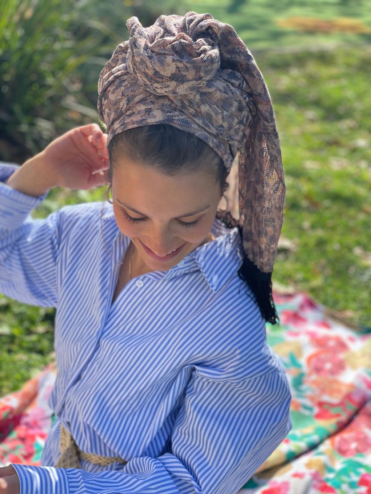 בד תחרה עדין עם הדפס מנומר ופרנזים שחורים.
